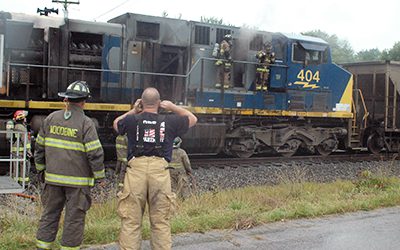 CSX locomotive catches fire in Woodbine