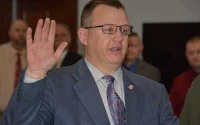 Photos by TIMOTHY WYATT and MARK WHITE A ceremony was held last Thursday at the Whitley County Judicial Center to swear in many of Whitley County’s officials, several of which are new to their offices. TOP LEFT: Bill Elliotte takes the oath of office...