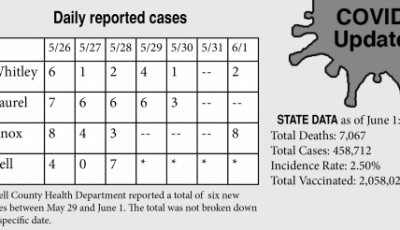 With the new cases, Laurel County’s COVID–19 incidence rate stands at 20.