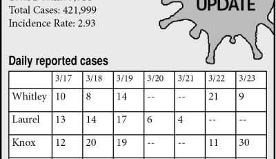 The Laurel County Health Department announced 133 additional cases of COVID–19 on Tuesday, bringing the county’s total to 4,160.